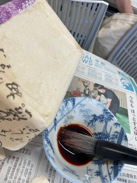 柿渋を使った小物入れの作り方を教えてもらいました。