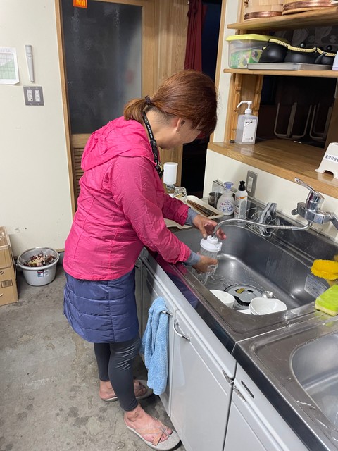 食後は洗い物手伝ってもらった