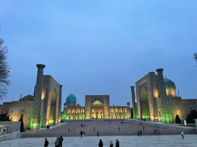 レギスタン広場は夕方からのライトアップも美しい