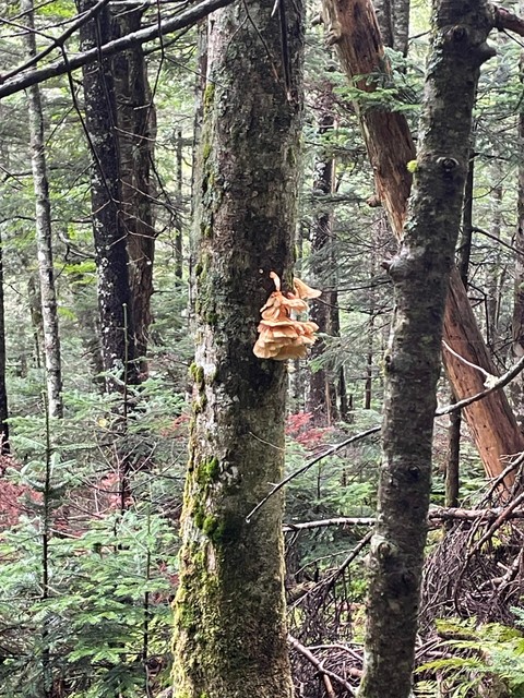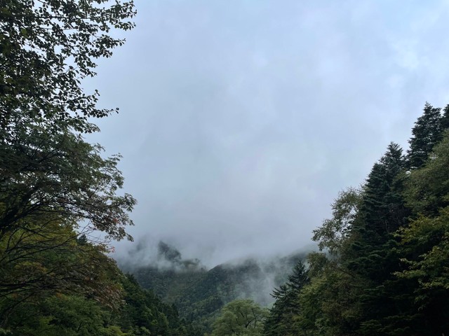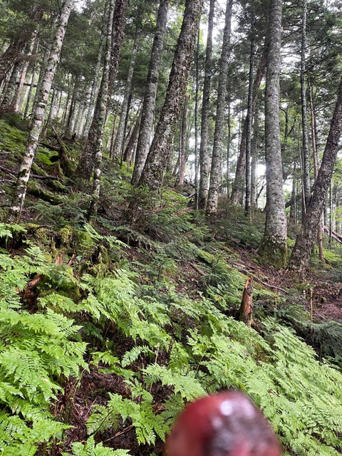 雨の山で