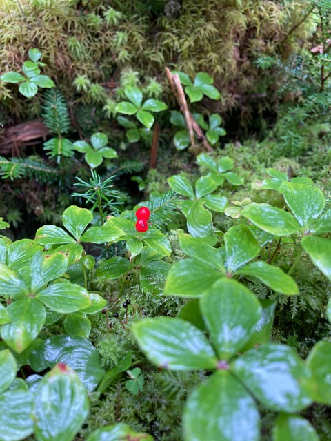 苔の間から顔を出す赤い実。